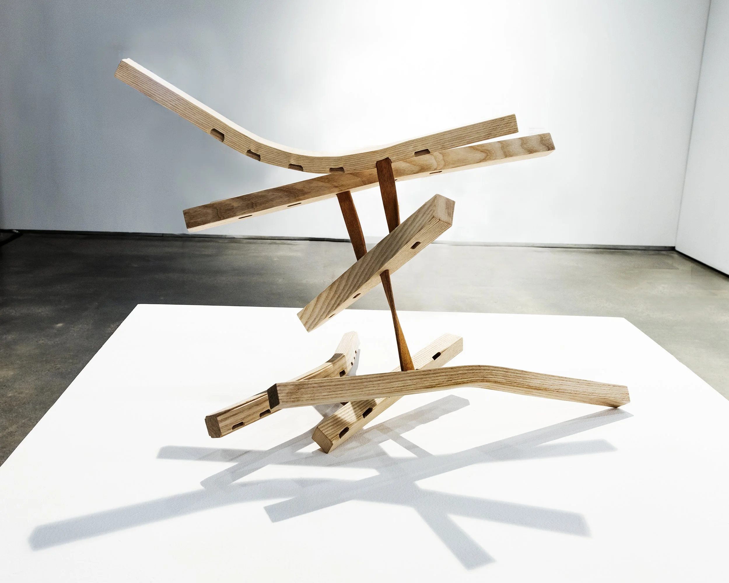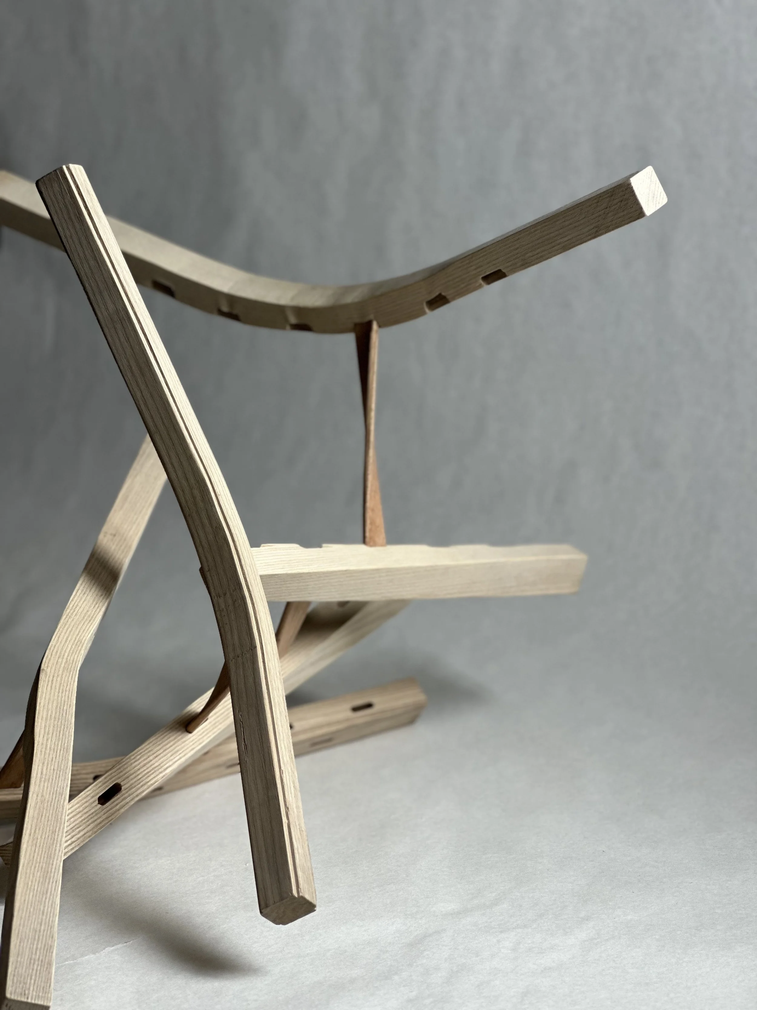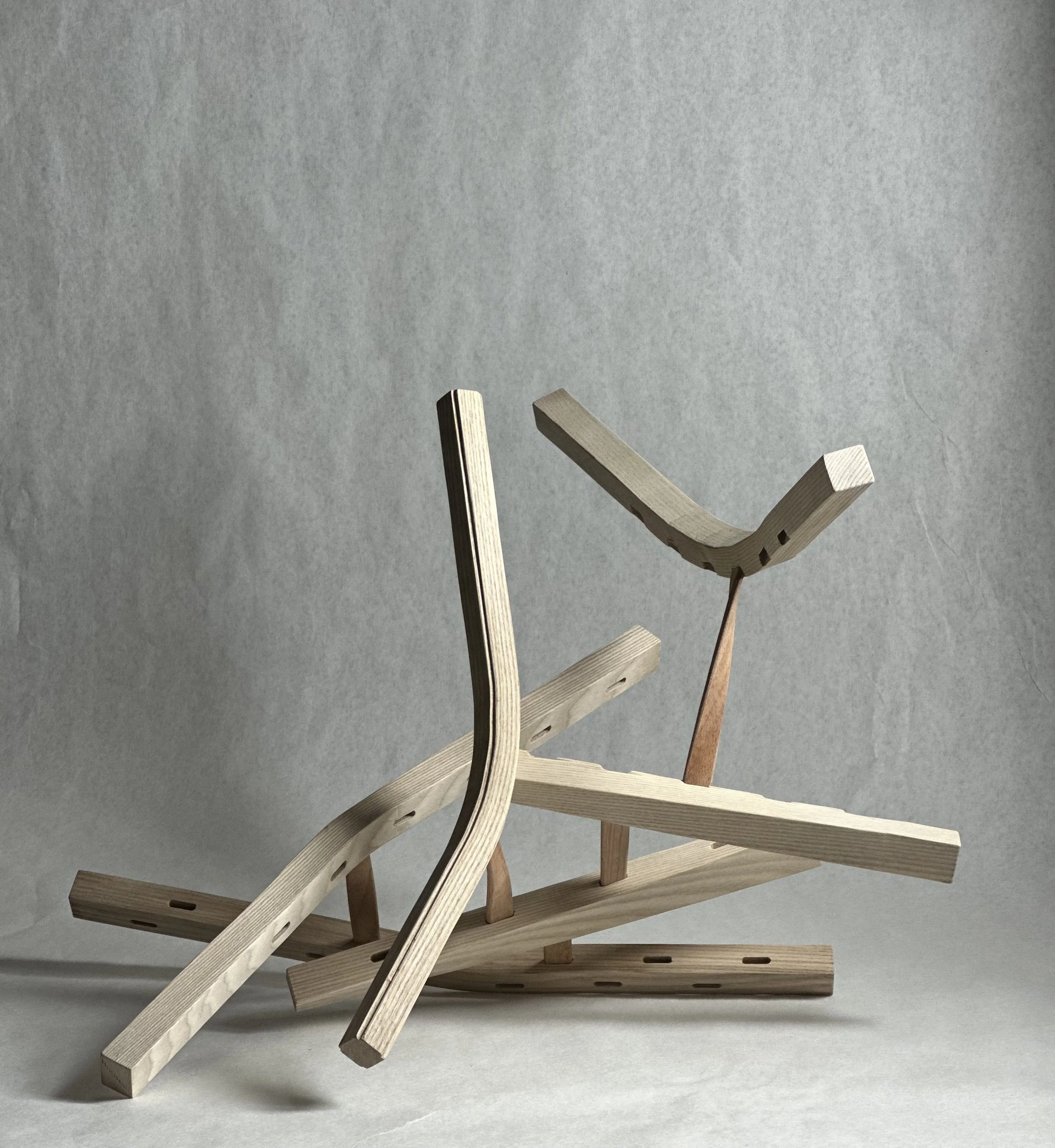 a modular connection piece used to study and practice steam bending methods, jig-making, and joinery. Ash & red oak