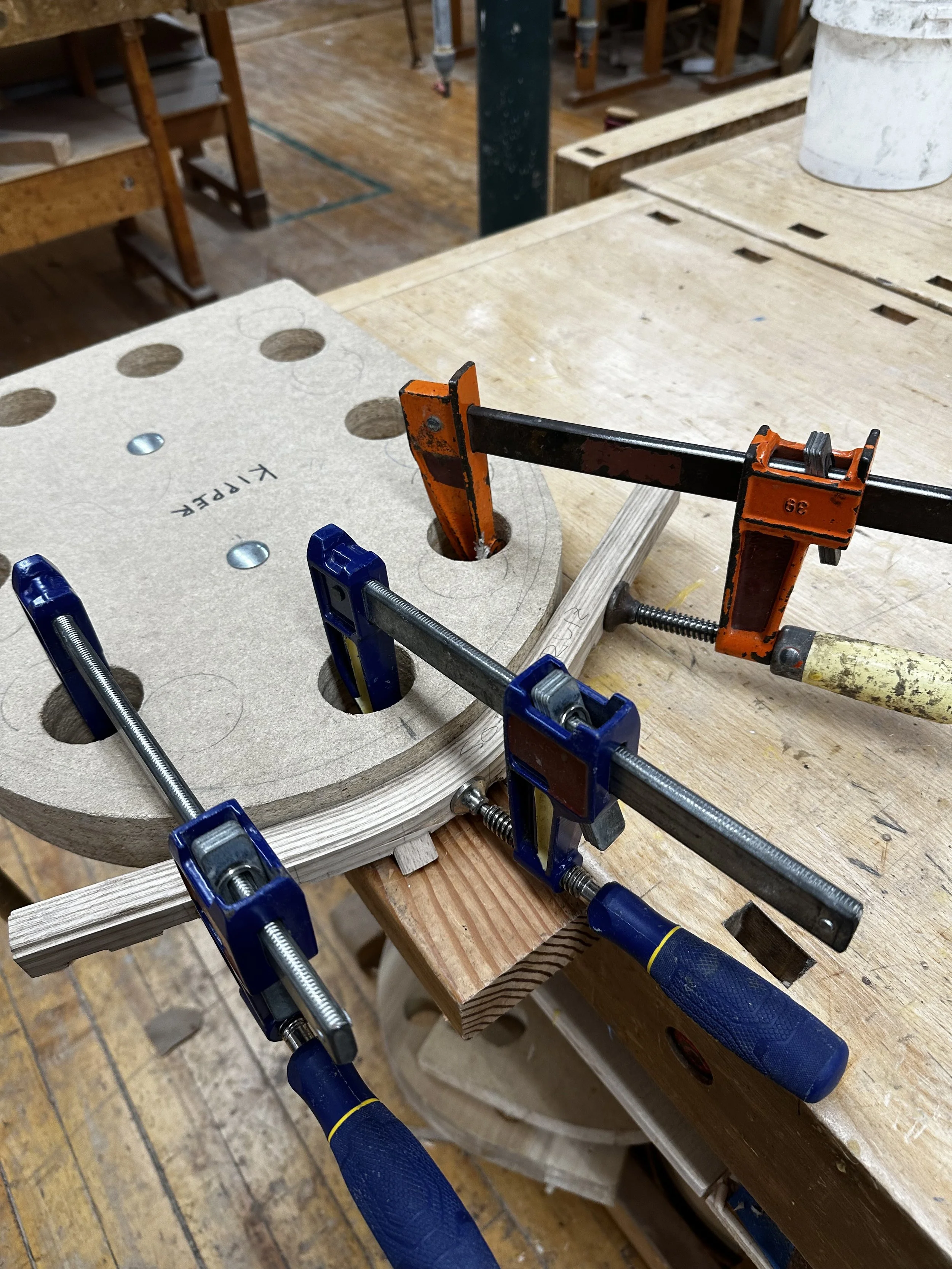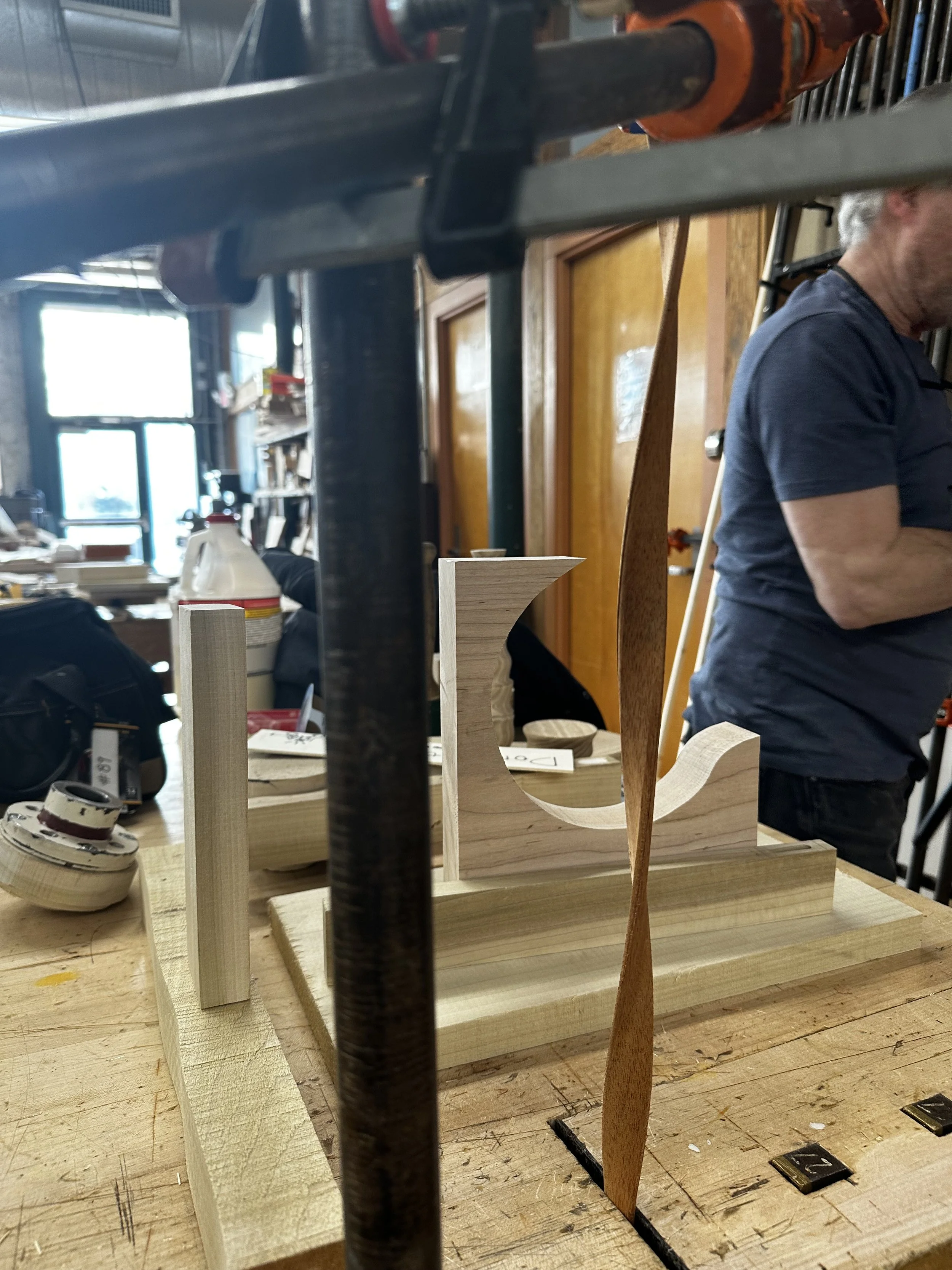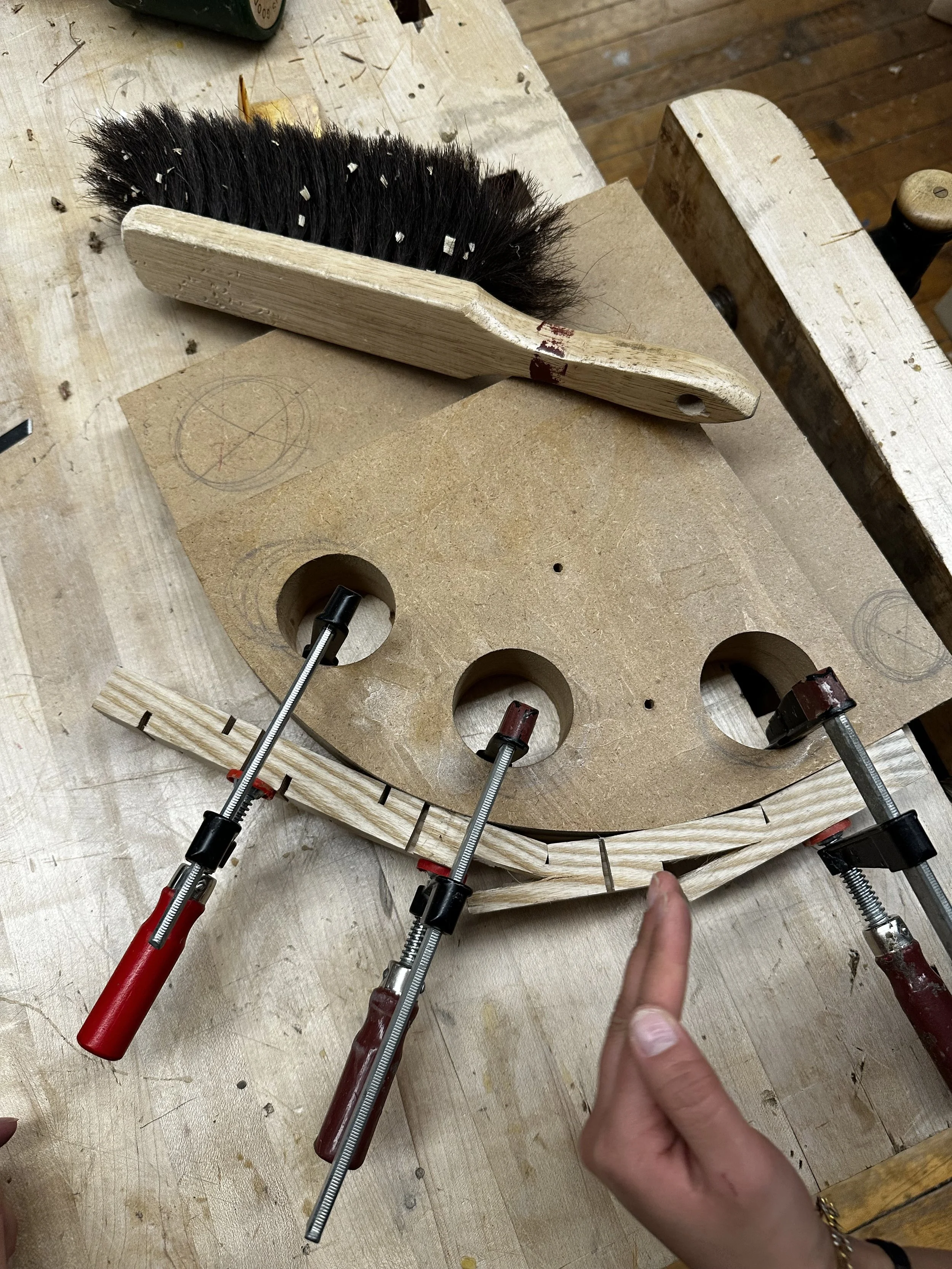a modular connection piece used to study and practice steam bending methods, jig-making, and joinery. Ash & red oak