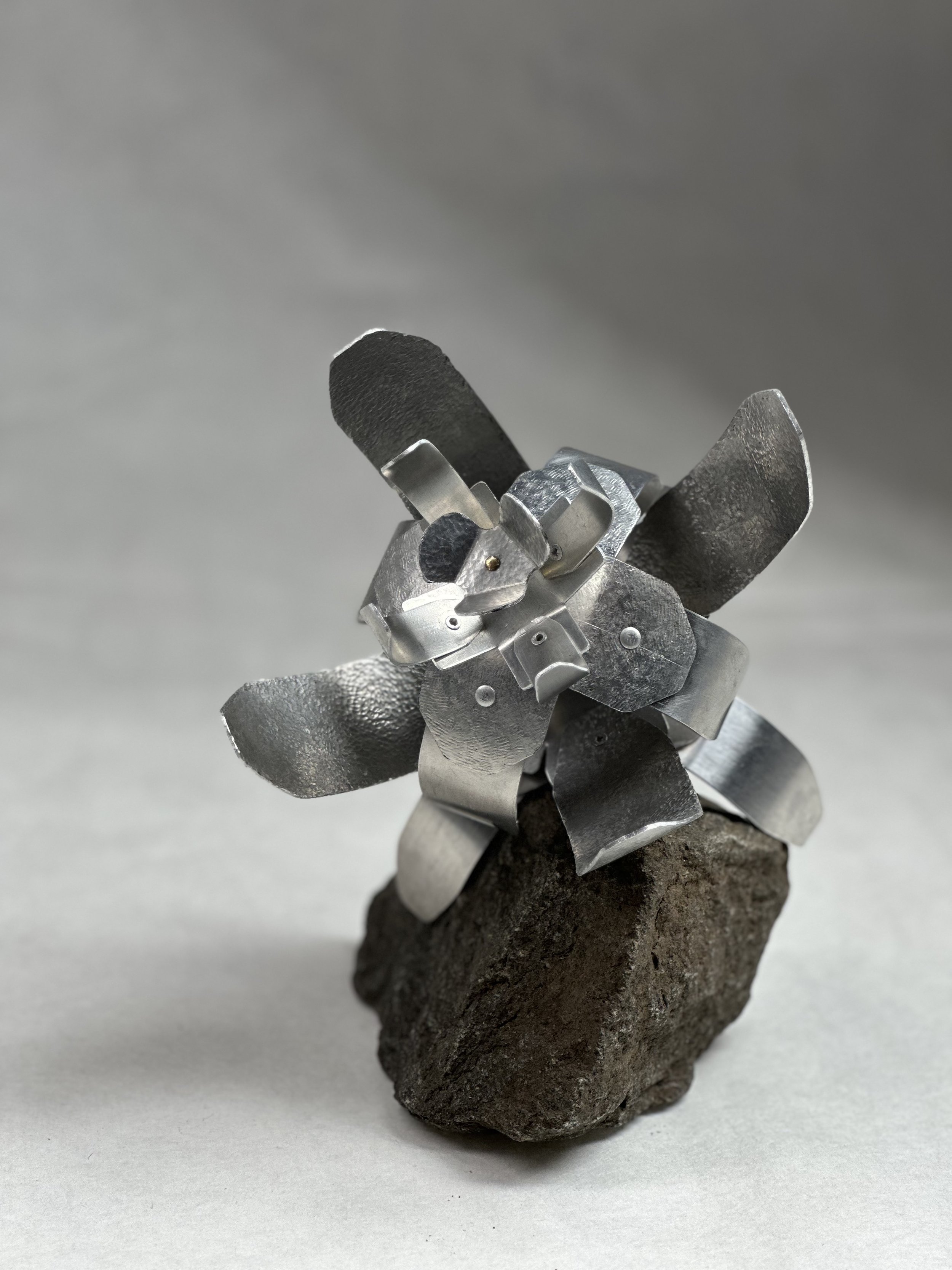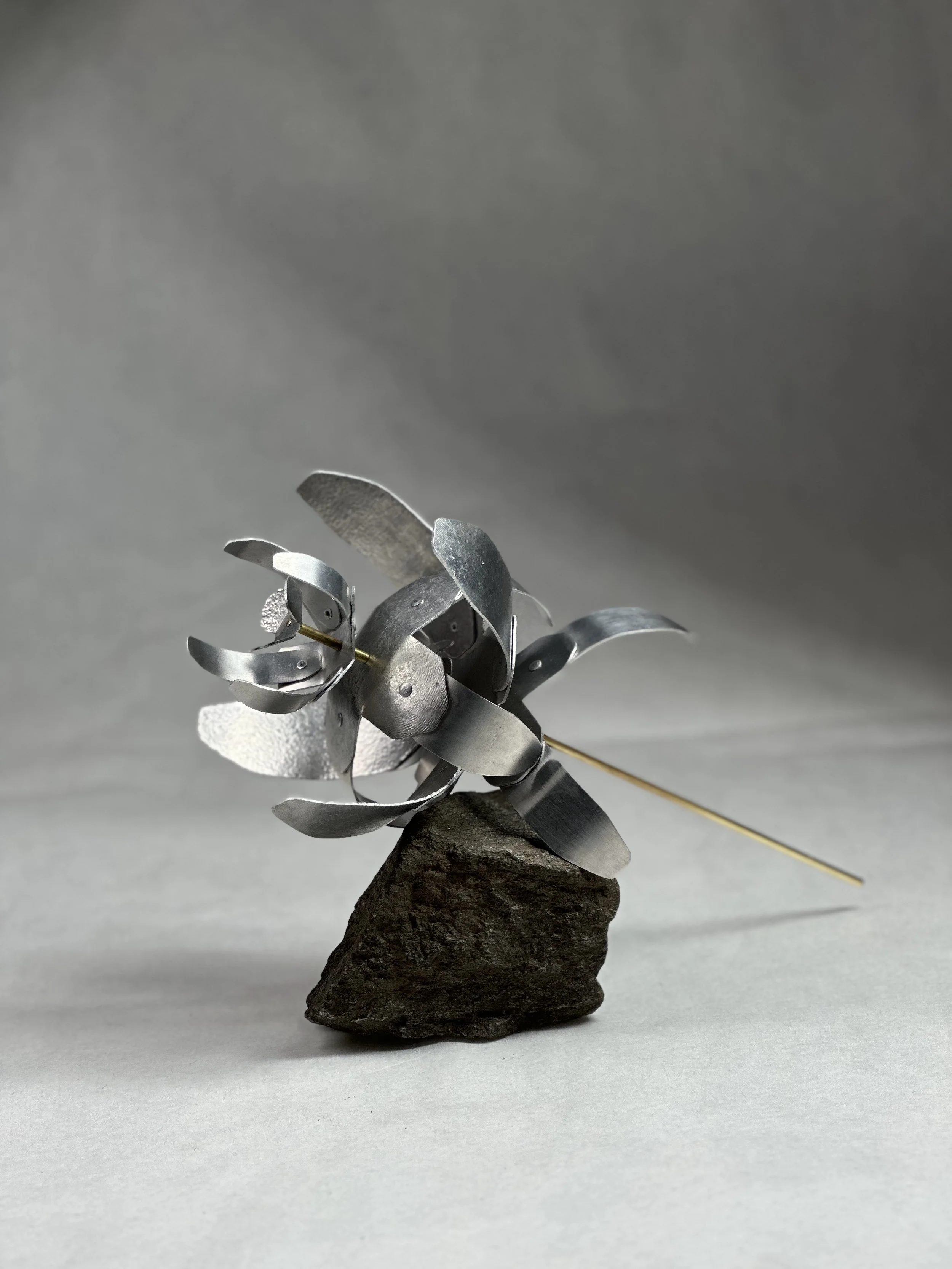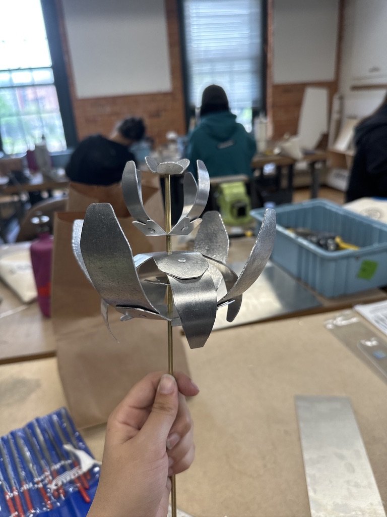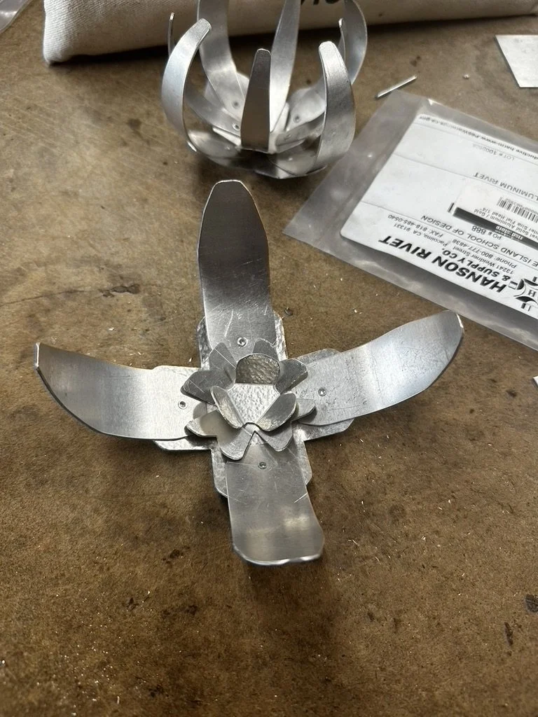 test 2: fingerbent and rolled petals riveted onto a floral, bent base