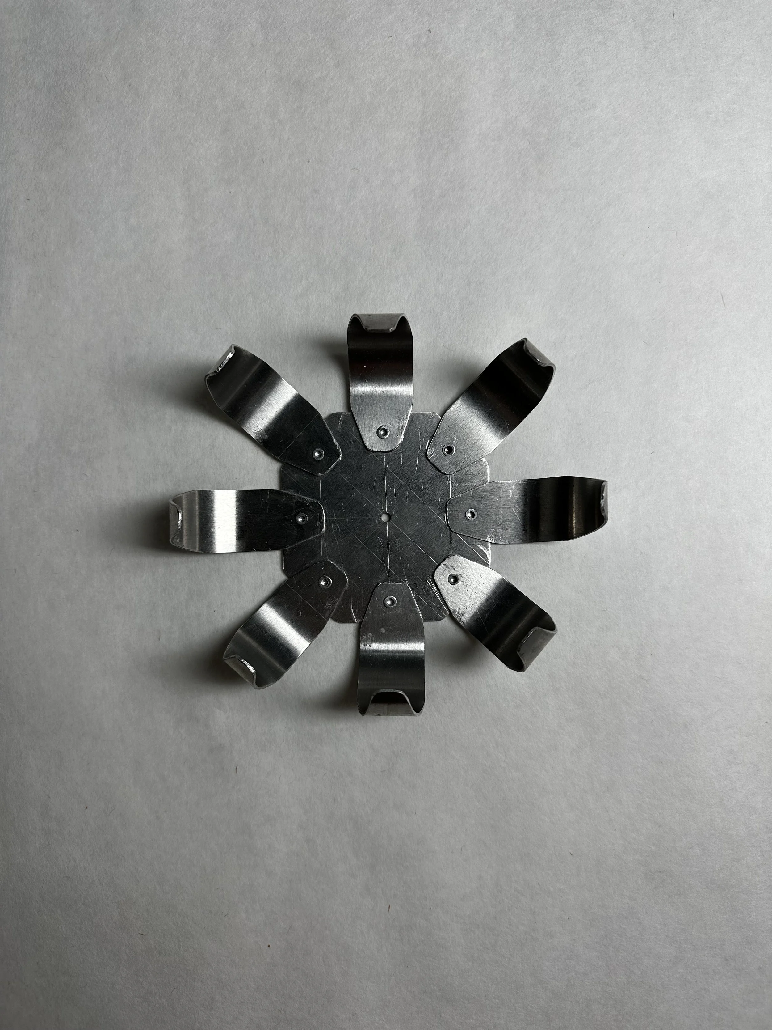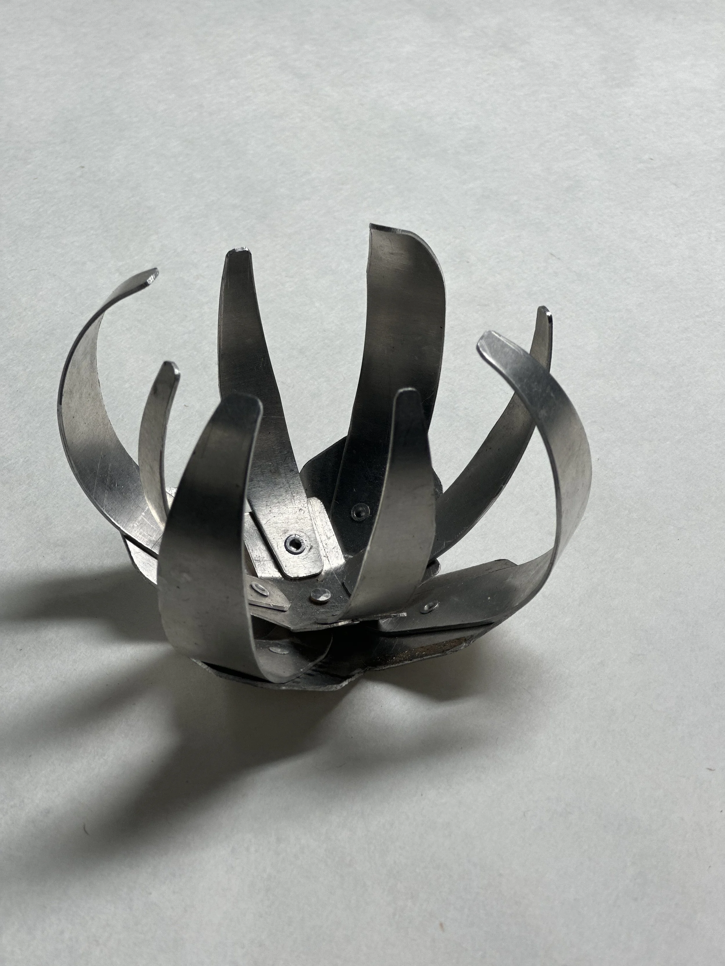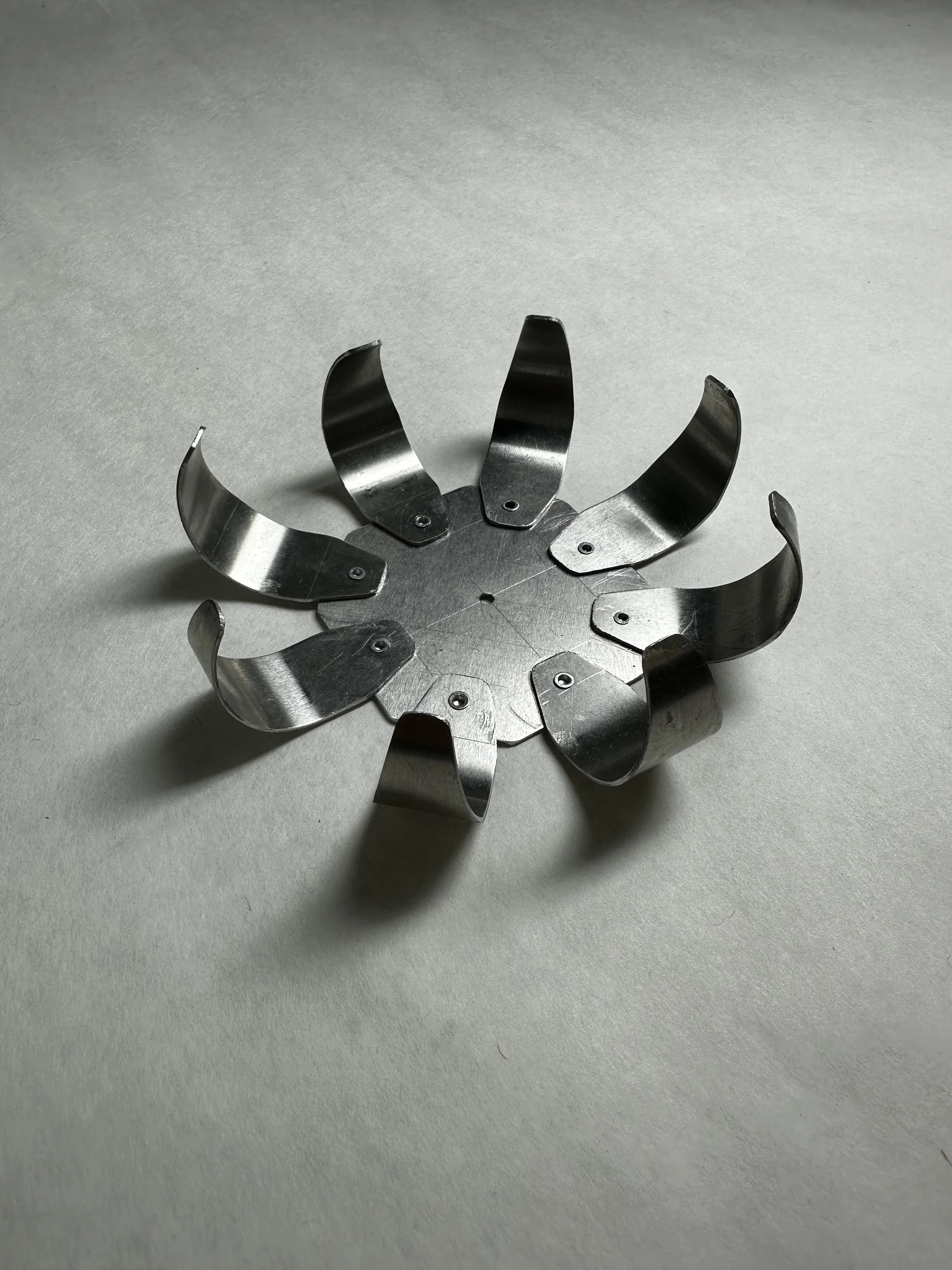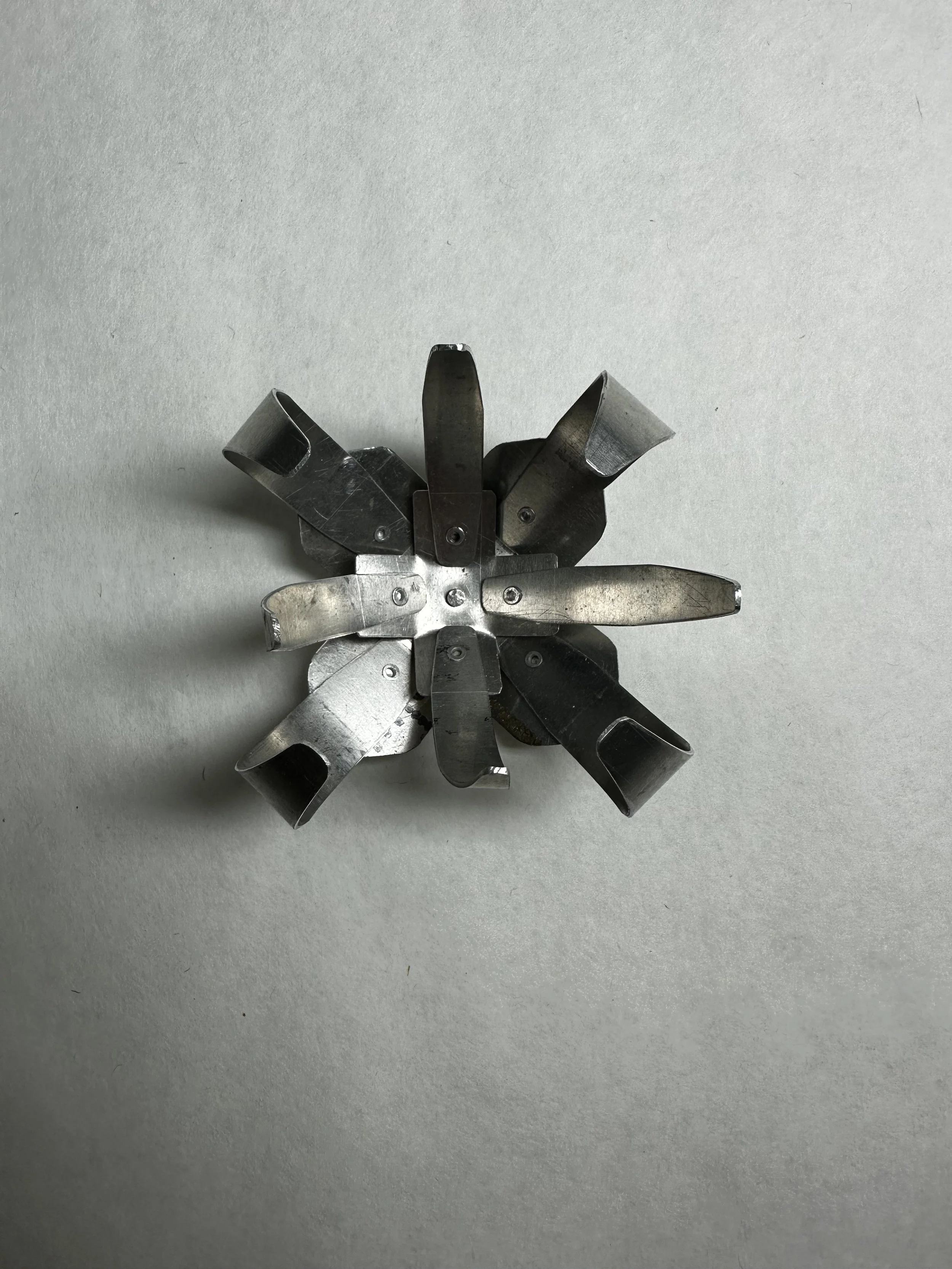 test 1: rolled petals riveted onto a flat hexagonal base