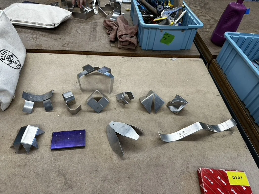 initial studies and tests of bending aluminum in my desired gauge, and different forms I was interested in using in my final product